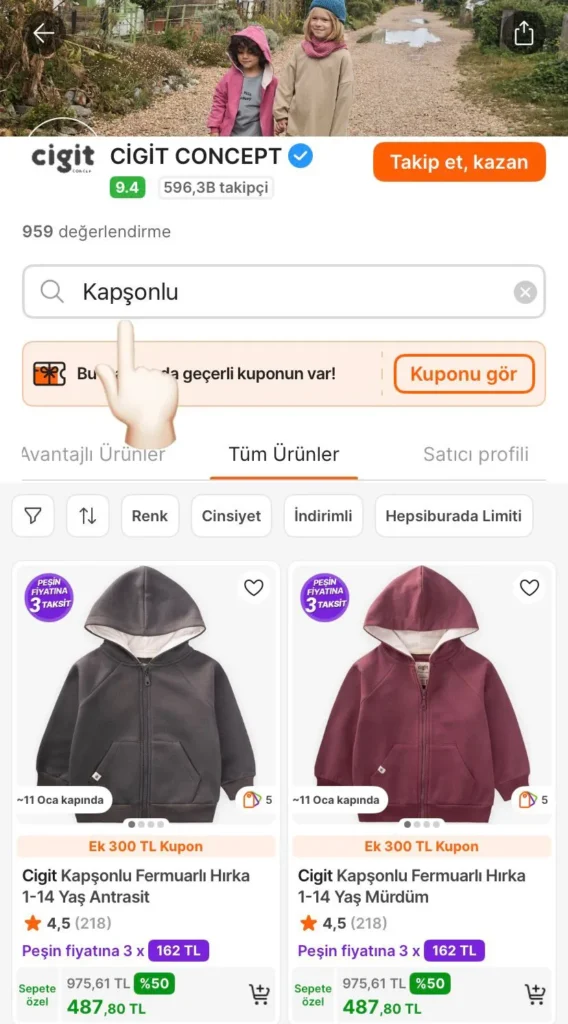 Mağaza İçi Aramaya Kapşunlu yazınız. Çıkan tüm ürünlerde 2 Adet üzerine 300TL indirim Kuponu Çıkmaktadır.